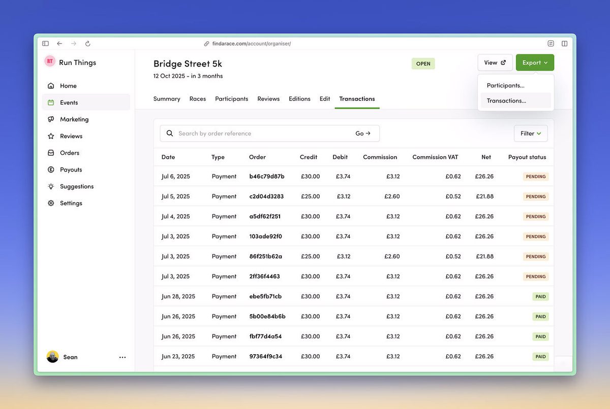 Earlier this year we released a Suggestion Board, where Race Organisers could submit feedback and ideas for future features. Being able to view transactions at individual event level, was one of the most-requested features and is the first Suggestion to move all the way through to release.